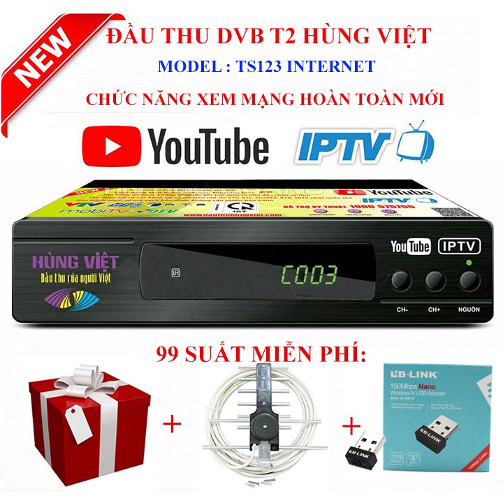 Giảm giá Đầu thu truyền hình mặt đất DVB T2 TS123 Internet Hùng Việt( Tặng anten và usb thu wifi) còn 455,050đ