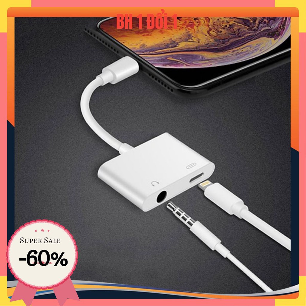 Chỉ có 40,000đ khi mua [ BH 1 Đổi 1 ] Jack Chuyển Đổi + Giắc Chia Cổng iPhone 7/8/X/11 Thành Cổng Sạc + Cổng Tai Nghe + Hỗ Trợ Mic