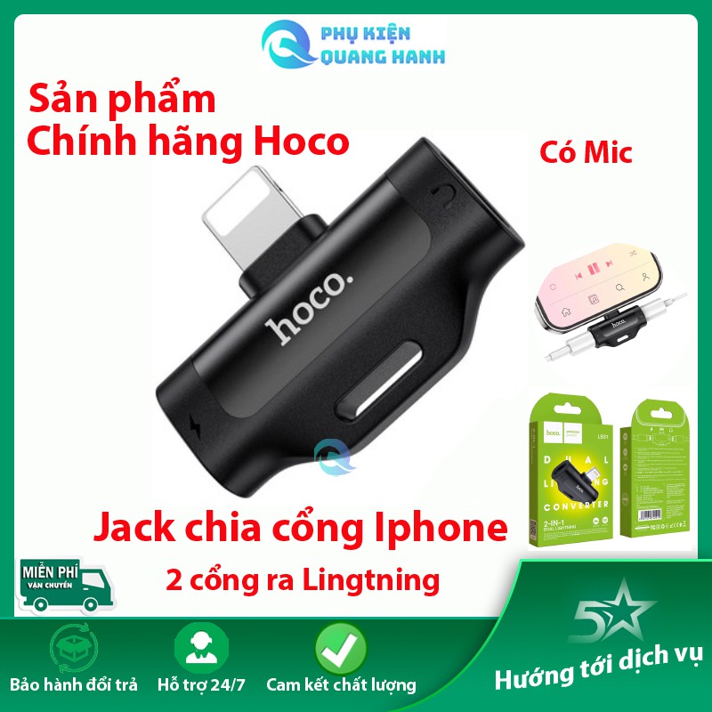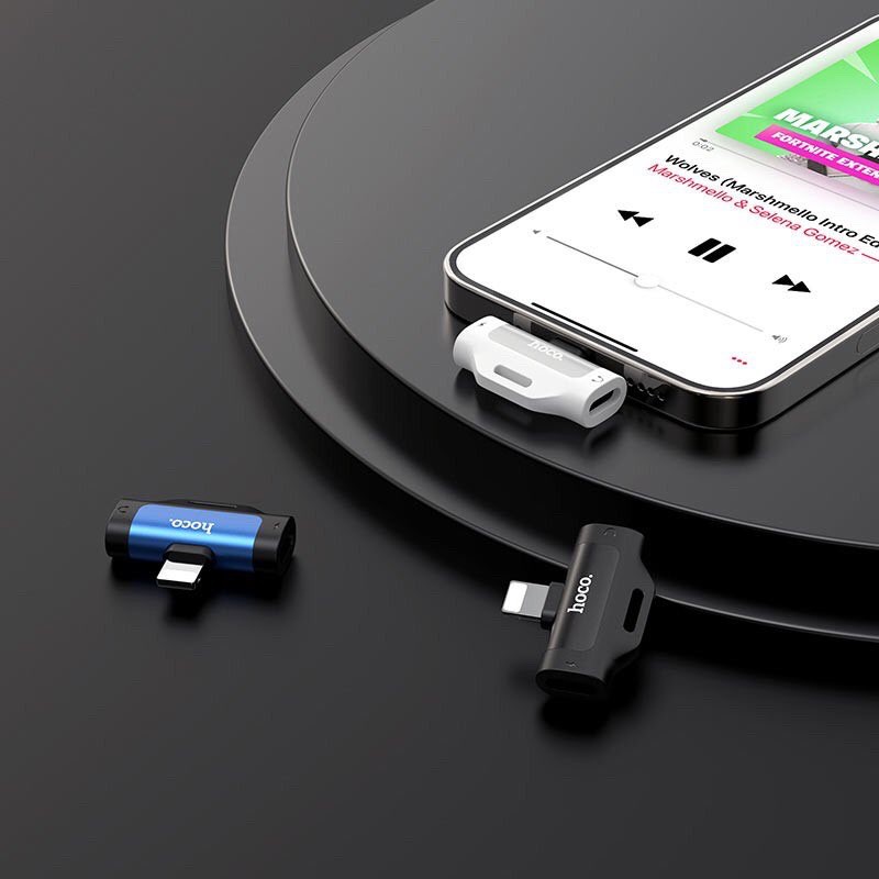 🌈Jack chuyển chia cỏng iPhone chính hãng HOCO LS31 2 cổng Lightning (cổng sạc + tai nghe Lightning) free ship
